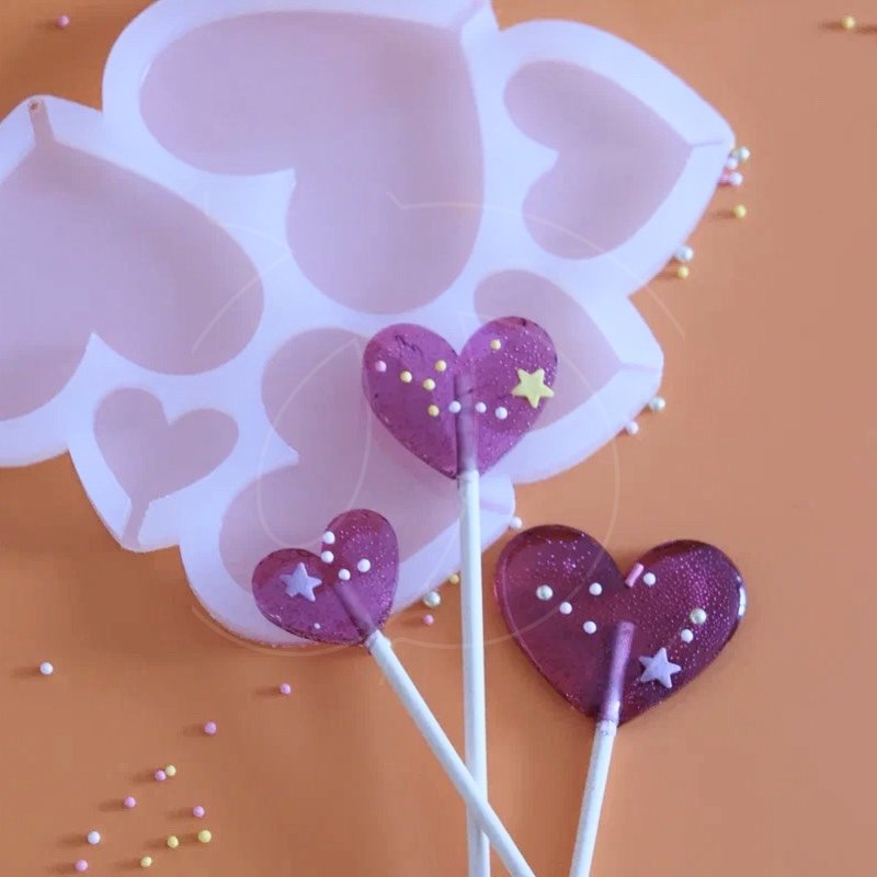 Форма силиконовая для леденцов "Сердечки" 6 шт