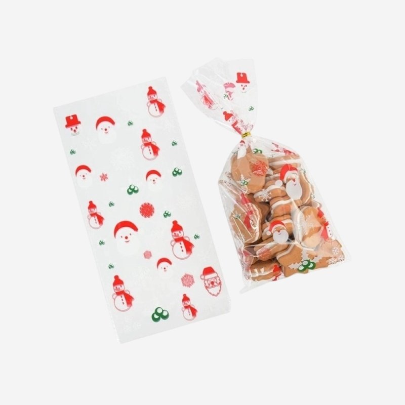 Пакетик прозрачный для сладостей "Дед мороз, снеговик, снежинки" 27х13 см 10 шт