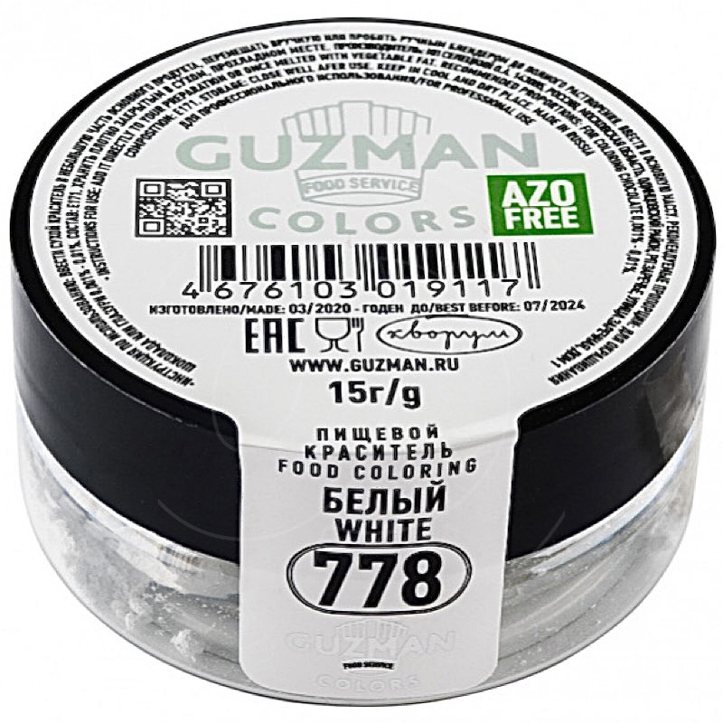 Доставка Краситель пищевой сухой жирорастворимый GUZMAN 778 Белый 15 г из магазина в вашем городе:
