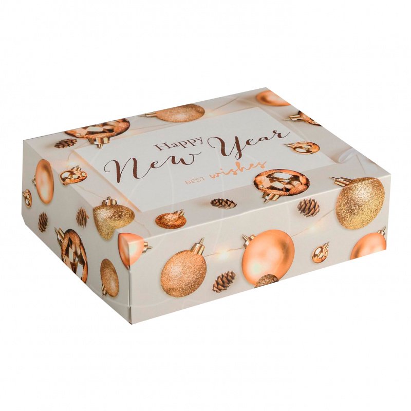 Доставка Коробка для сладостей "Ёлочные игрушки" золото из магазина в вашем городе: